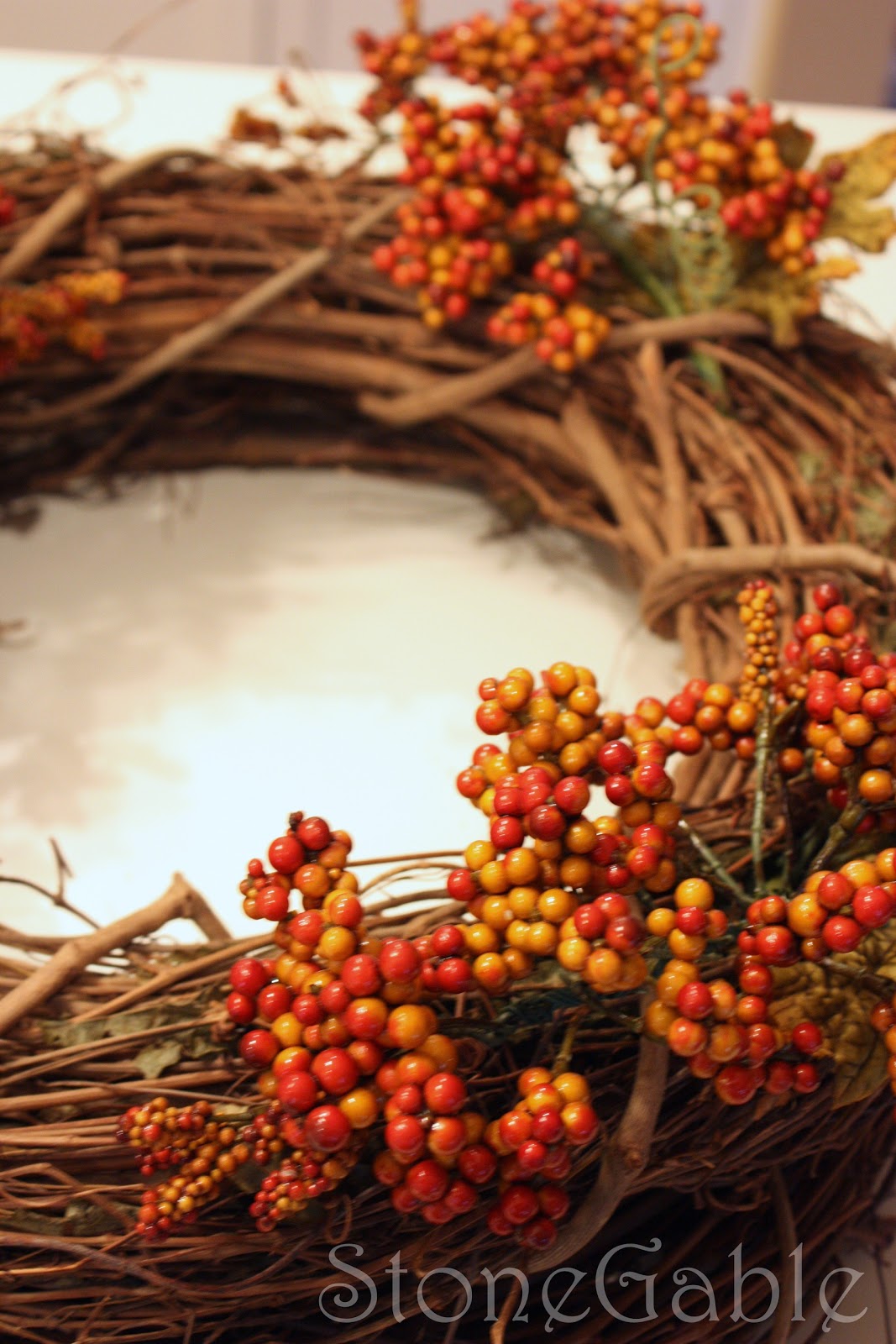 Here at StoneGable the change of season gives me a reason to create a new wreath. This fall I wanted to make a neutral colored wreath using corn husks, full of creamy colors and earthy browns... until I visited a Hobby Lobby! I could not resist all the warm, rich colors of pumpkins, berries and leaves. So I left with a bag (several bags) of colorful goodies and my mind swimming with ideas in a new direction.