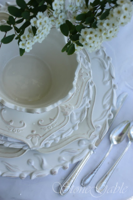 http://stonegable.blogspot.com/2011/05/bridal-veil-tablescape.html