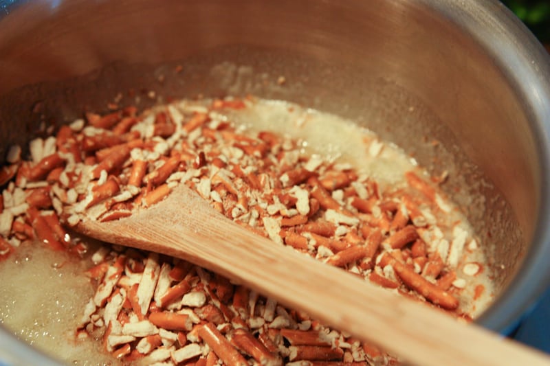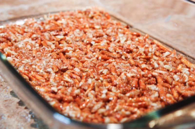 1. Whiz the graham crackers in a food processor. Add melted butter and
