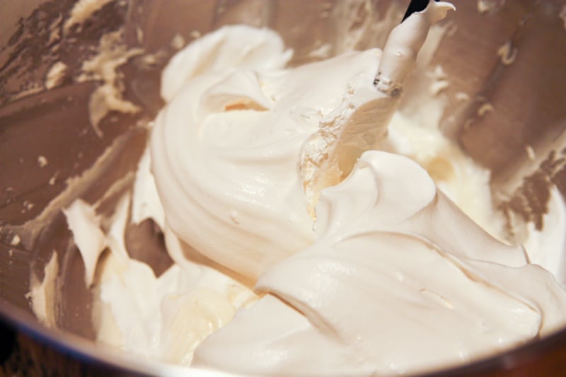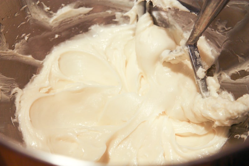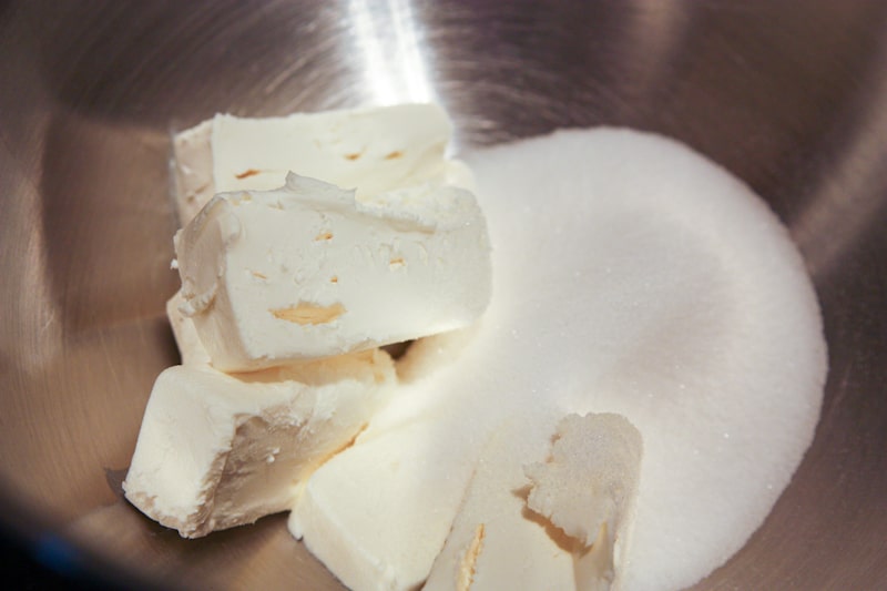 Mix well together the cream cheese, sugar, and cream. You can do this